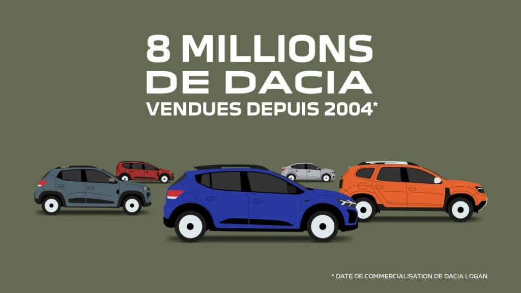 8 millions. Un chiffre symbolique qui reflète une incroyable réussite et suscite une grande fierté. Dacia a dépassé en 2023 les 8 millions de véhicules vendus. De constructeur national roumain avant 2004, à marque à succès désormais connue à travers l’Europe, cette métamorphose est une véritable success-story. Quels sont les atouts, les forces, les particularités de Dacia ? Voici en images des informations marquantes ou étonnantes sur le parcours de Dacia depuis 19 ans.