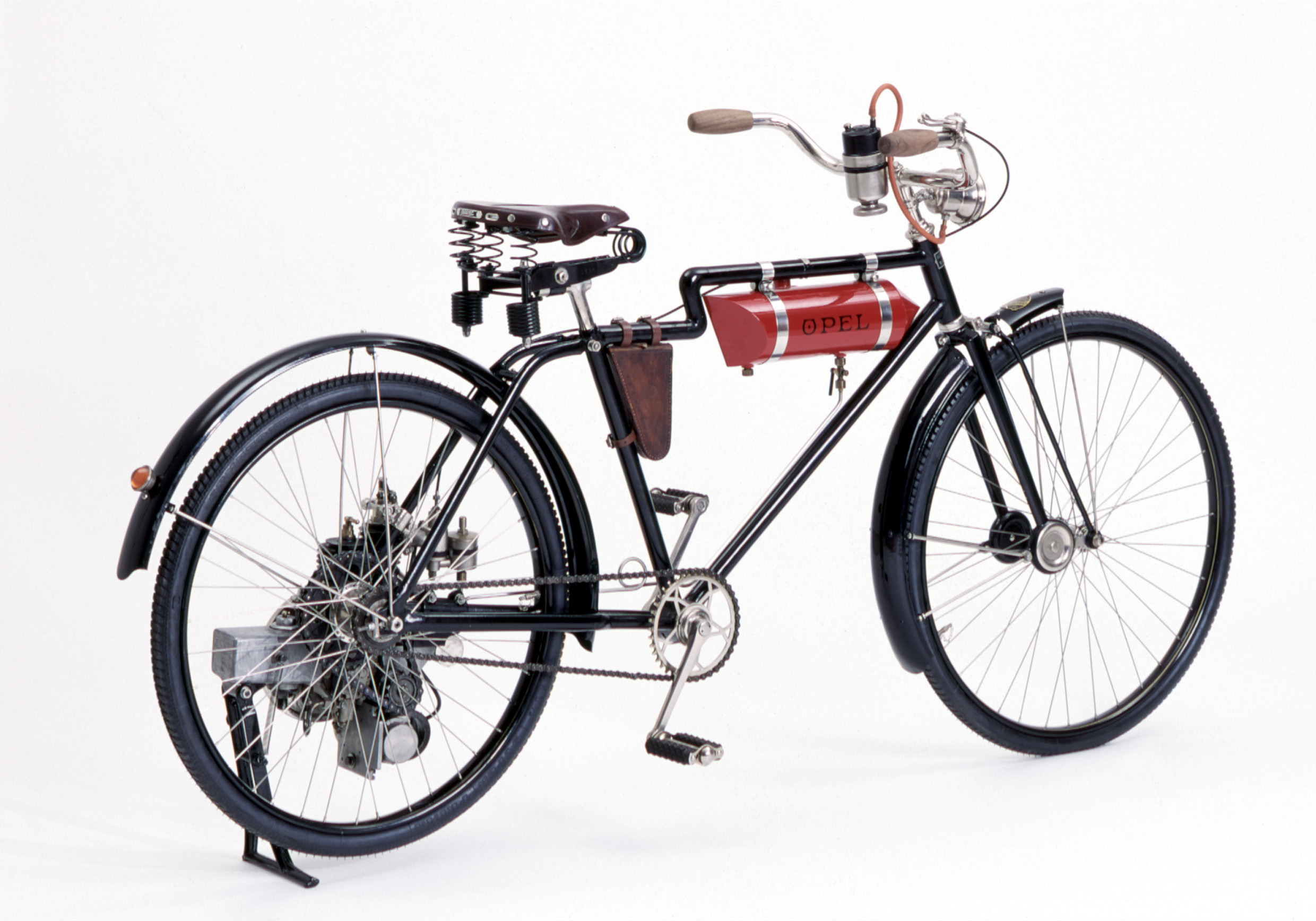Sept ans plus tard, Opel est revenu sur ses pas et a lancé le développement d’une moto légère et robuste. Les vieux projets ont été dépoussiérés et il a été conclu que la « bicyclette à moteur » était le type de véhicule qui correspondait aux attentes. C’était une bicyclette basique équipée d’un monocylindre de 1 ch de 140 cm³ monté sur la roue arrière et qui pouvait atteindre les 40 km/h sur le plat. Trois versions différentes ont été réalisées : homme, femme et sportive.