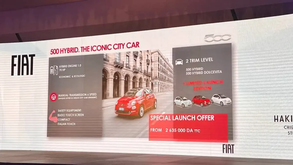 - La FIAT 500 Hybrid s’affiche à partir de 2.635.000 DA jusqu’à 2.920.000 Da.