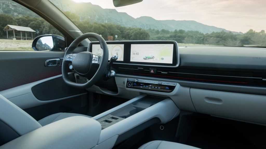 En parfait accord avec cette thématique et inspirés par la conscience écologique des clients d’aujourd’hui, les designers de Hyundai ont fait appel à des matériaux durables pour l’intérieur extrêmement chaleureux et écoresponsable de IONIQ 6. Parmi ces matériaux, certains sont déjà présents dans l’habitacle de IONIQ 5 : tissu en PET biosourcé pour le ciel de pavillon, peinture biologique issue d’huiles végétales pour les portes, et tissu en PET recyclé et cuir écologique pour les sièges. Au niveau de sa planche de bord, IONIQ 6 intègre également un habillage en bio TPO composé de 12 % de PET biosourcé. Sa moquette contient jusqu’à 20 % de nylon provenant de filets de pêche recyclés.
