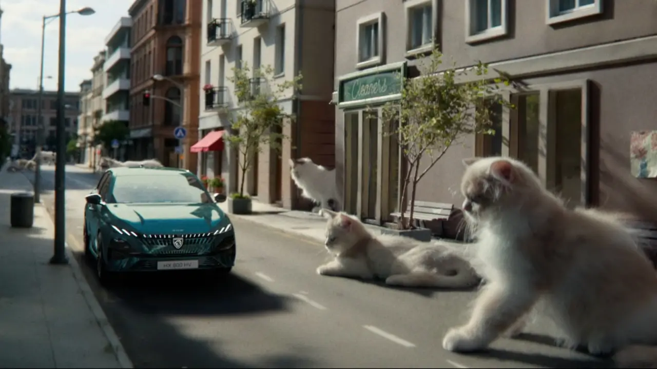 Le brief créatif est assumé. Peugeot part du constat que le segment C, l’un des plus disputés d’Europe, est devenu un espace de designs interchangeables et de propositions prévisibles. Les chatons incarnent cette uniformité avec une ironie bienveillante. Le lion, symbole présent sur les produits Peugeot depuis deux siècles, incarne la rupture : lignes tranchées, calandre lumineuse, présence visuelle immédiatement identifiable.