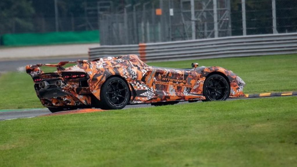 Le prototype peut être vu portant le même enveloppement corporel que celui utilisé pour l’Essenza SCV12, il pourrait donc très bien être une variante sans toit de ce dernier, ce qui en ferait un modèle en édition limitée dédié uniquement à la piste, contrairement au Monza SP2 par exemple, qui vous pouvez également conduire sur la voie publique.