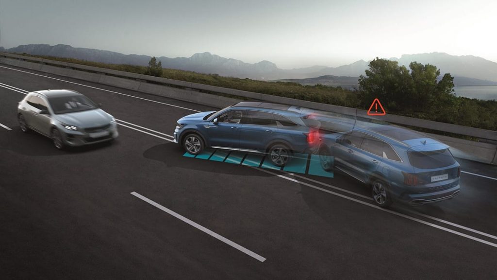Le nouveau Kia Sorento est la première voiture à être équipée du système innovant de freinage multicollision de Kia, lequel protège les passagers contre le risque de collisions secondaires après un premier impact.