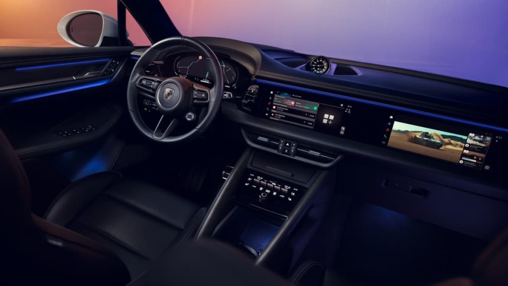 Le Macan dispose de trois écrans, dont un écran incurvé de 12,6 pouces face au conducteur, un écran central tactile de 10,9 pouces et un écran optionnel pour le passager avant empêchant le conducteur de voir le contenu affiché.