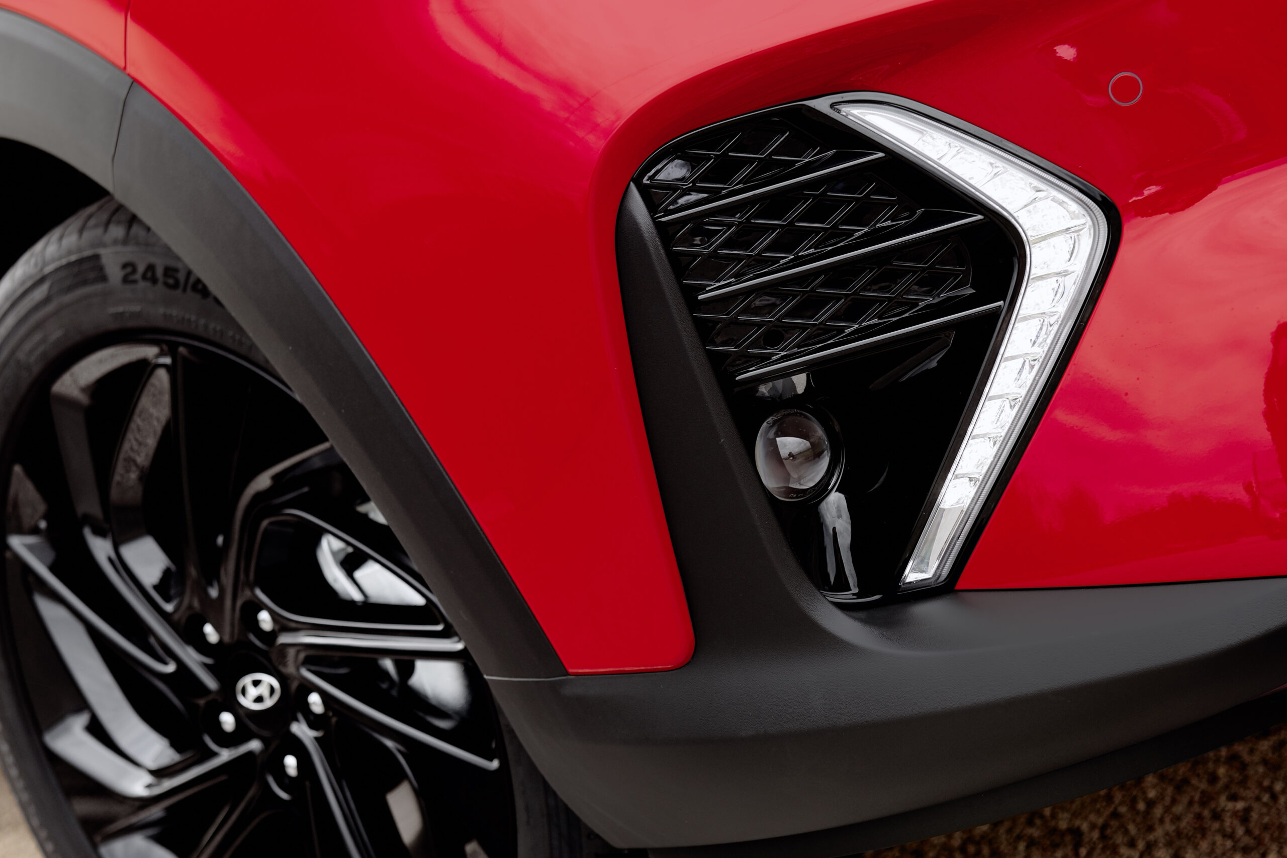 Les boucliers redessinés, le nouveau design de la calandre de couleur foncée et son entourage chromé sombre font forte impression au premier regard. De plus, le coloris noir appliqué sur les jantes alliage 19’’, les rétroviseurs et le spoiler arrière rehausse la silhouette sportive du véhicule. Des projecteurs avant sur fond noir, des feux de jour à LED exclusifs et des entourages de vitres foncés viennent peaufiner la tenue sportive de Nouveau Tucson N Line.