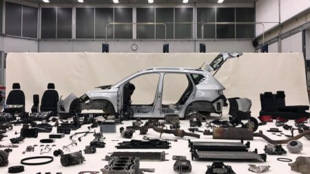 Une SEAT Ateca démontée en toutes pièces pour examen après 100 000 kilomètres parcourus