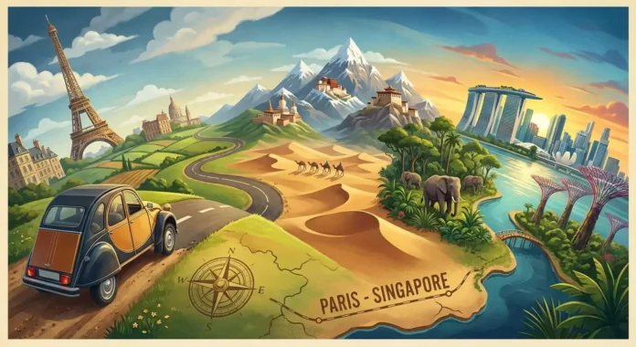 Itinéraire, climats, fuseaux horaires, véhicule et logistique pour imaginer un Paris–Singapour par la route, sans surprises inutiles.