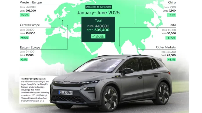 Skoda livre 509 400 véhicules à ses clients à travers le monde au cours des six premiers mois de...