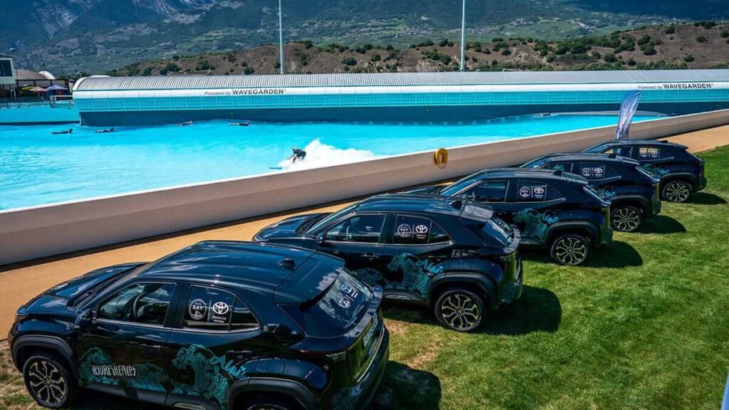 Depuis août 2022, Toyota s’engage en qualité de partenaire de la mobilité du bassin de surf Alaïa Bay à Sion. Une flotte de cinq Toyota Yaris Cross est désormais mise à disposition du site. La marque sera également présente sur place et en ligne grâce à plusieurs points de communication. Toyota renforce ainsi son engagement en faveur du surf suisse, en complément de ses coopérations avec Swiss Surfing et Urban Surf à Zurich.