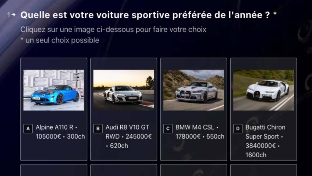 Avis aux internautes ! le vote pour départager les 14 modèles (commercialisés en 2022) et élire la « Sportive de l’année 2023 » aura lieu jusqu’au 31 janvier